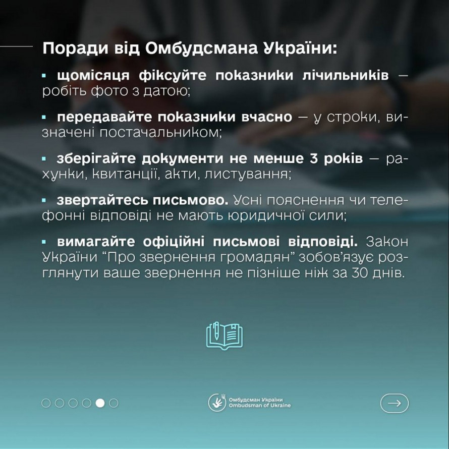 - щомісяця фіксуйте показники лічильників на фото з датою;