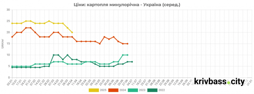 Незважаючи на падіння цін, картопля наразі залишається приблизно на 25% дорожчою, ніж у цей самий період торік. Однак аграрії попереджають: якщо ситуація не зміниться, і надлишки не зменшаться, вартість може знизитися ще більше.