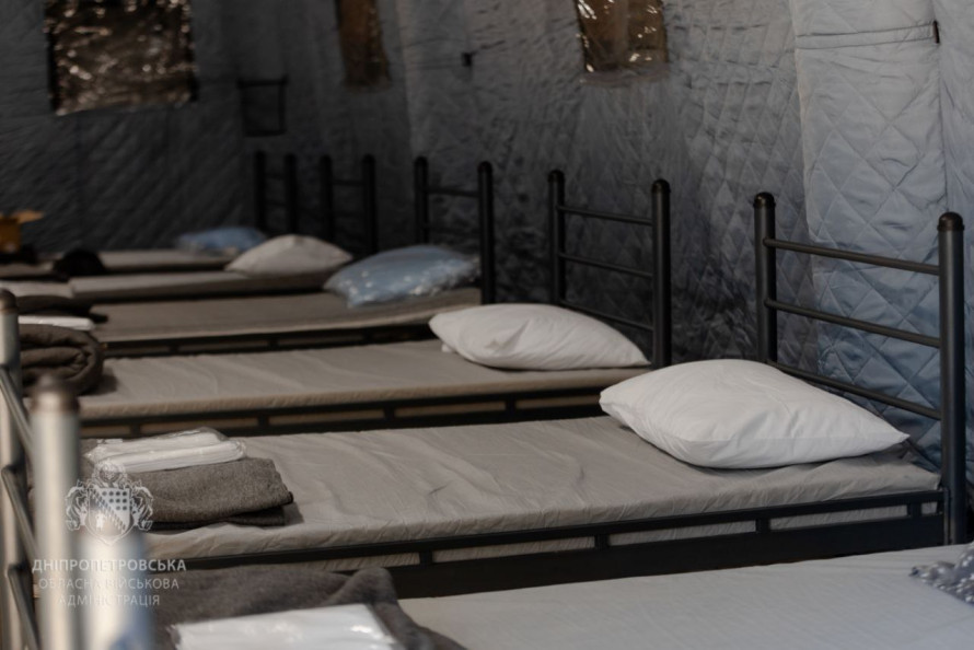 Тут створені окремі кімнати для матерів із дітьми, людей старшого віку та маломобільних мешканців. Також розгорнуті обігрівальні намети й укриття на випадок повітряної тривоги.