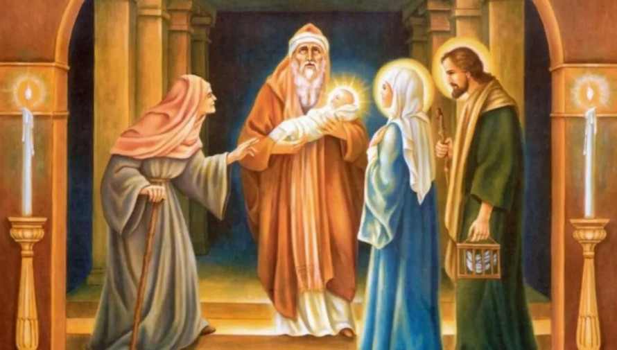 Коли Діва Марія і Йосип принесли немовля Ісуса до Єрусалимського храму на 40-й день після народження (за іудейською традицією батьки робили пожертву), Симеон узяв Христа на руки і впізнав у ньому Спасителя людства.