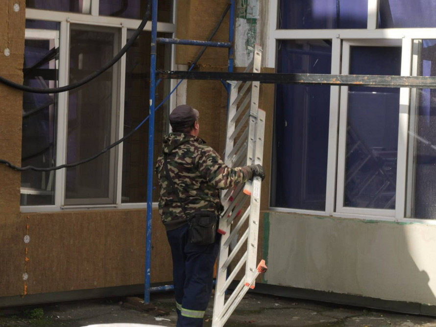 Зараз у роботі 10 об'єктів, серед них дитячий садок №190, що у Саксаганському районі. Роботи з термомодернізацїі тут розпочалися влітку, зараз проводиться утеплення фасаду.