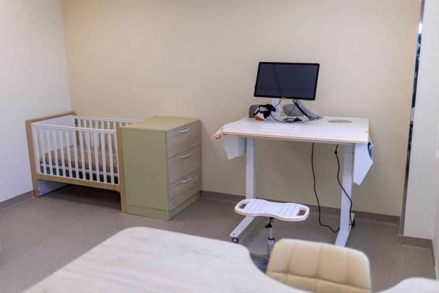 У іншому крилі простір для занять з ерготерапевтом. У ньому відтворили домашній побут. Є кухня, обідній стіл, шафа та дитяче ліжко. В іншій частині відділення ремонтні роботи на фініші.