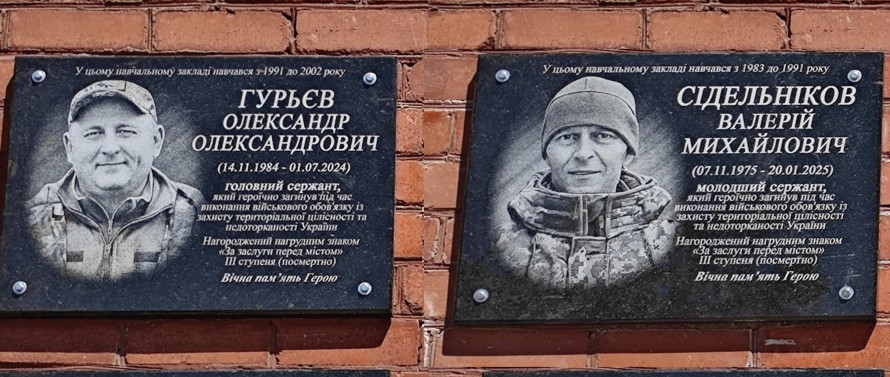 Цими днями на фасаді Криворізької гімназії №23 встановили меморіальні дошки своїм випускникам, які загинули на війні з росіянами.