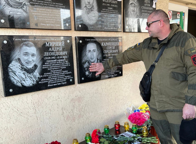 Цього тижня у Довгинцівському районі Кривого Рогу на фасаді 94-ої міської гімназії встановили меморіальні дошки на честь полеглих у боях з росіянами Захисникам - Андрію Мирному та Сергію Караченцеву.