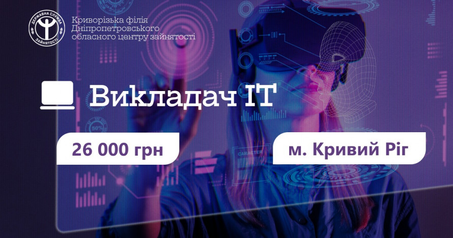 Криворізькі роботодавці шукають викладача ІТ. Про це повідомили фахівці Криворізької районної служби зайнятості.