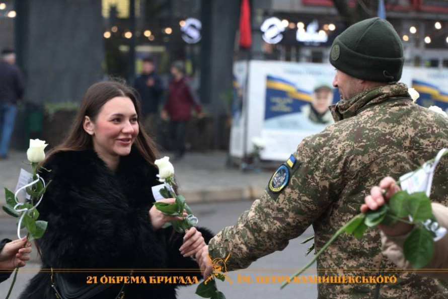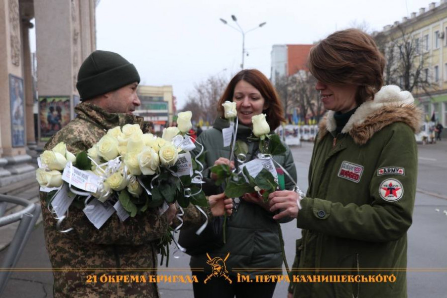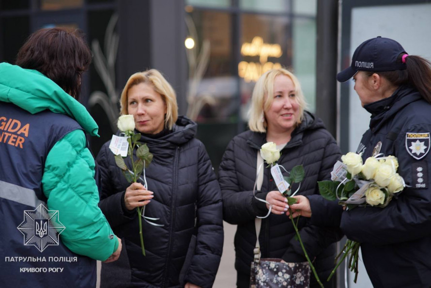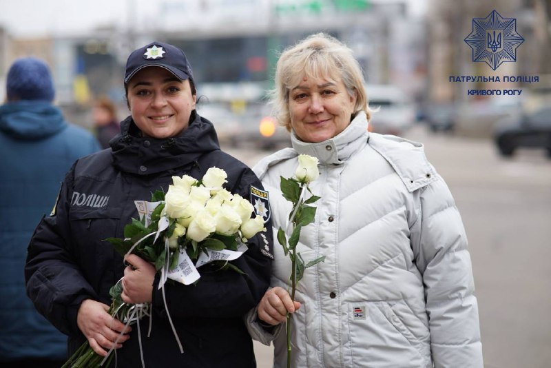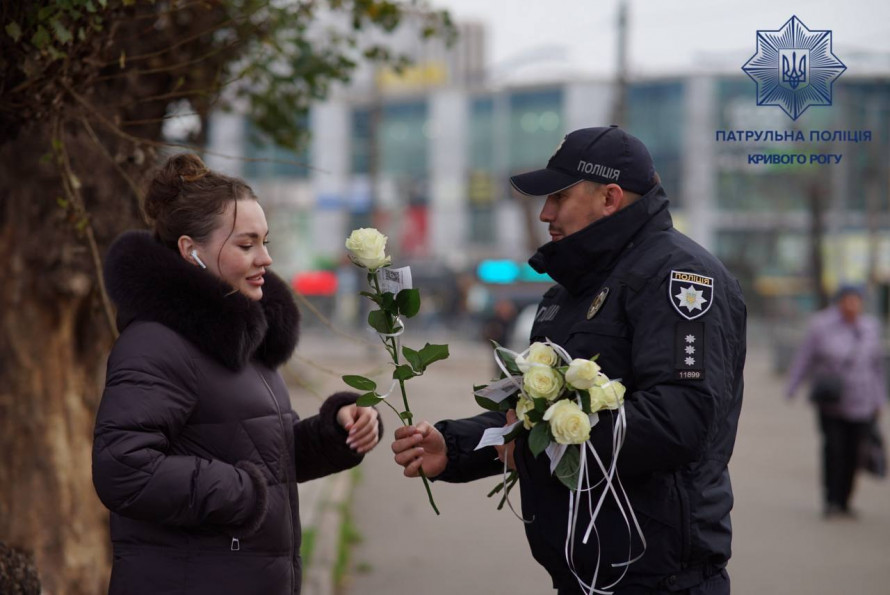 У Кривому Розі патрульні та нацгвардійці подарували жінкам білі троянди
