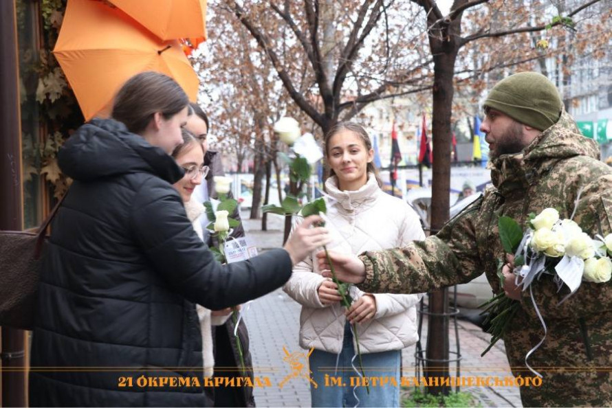 Протягом п’яти днів у різних районах міста правоохоронці та нацгвардійці дарували жінкам і дівчатам білі троянди. Загалом тільки патрульні роздали 500 квітів (по 100 троянд щодня).