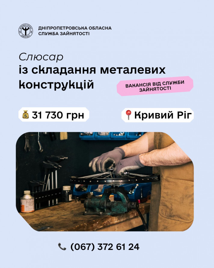 Фахівці по роботі з кадрами одного з криворізьких підприємств запрошують пошукачів роботи працевлаштуватися на посаду слюсар із складання металевих конструкцій.