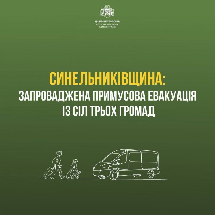 У трьох громадах Синельниківщини оголосили примусову евакуацію для сімей із дітьми. Обовʼязковий виїзд відбуватиметься у деяких населених пунктах Великомихайлівської, Маломихайлівської та Межівської громад.