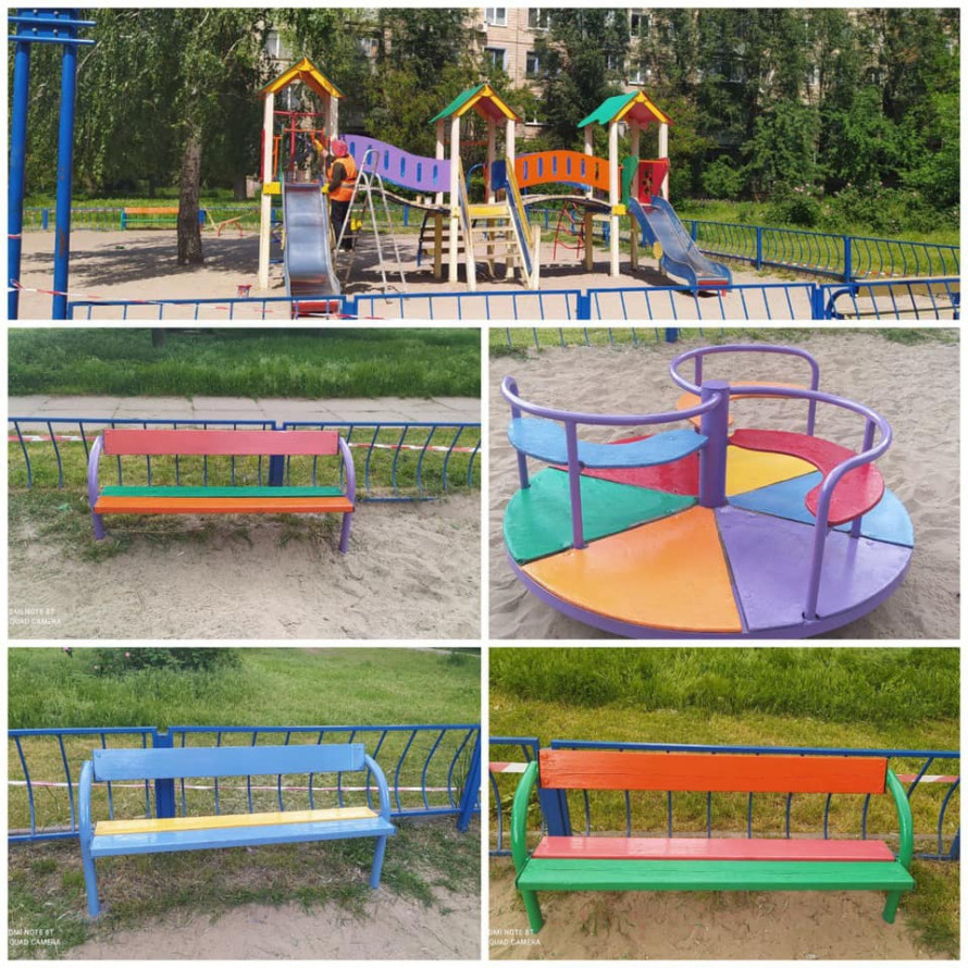 - пофарбували гойдалки, лавки та елементи ігрового комплексу;