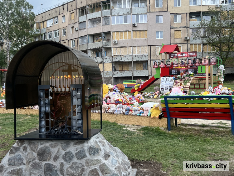 Біля дитячого майданчику, який став останнім для малечі, зібралися очільники громад Криворіжжя, рідні, друзі загиблих і небайдужі містяни, серце, яких крається разом з родинами загиблих.