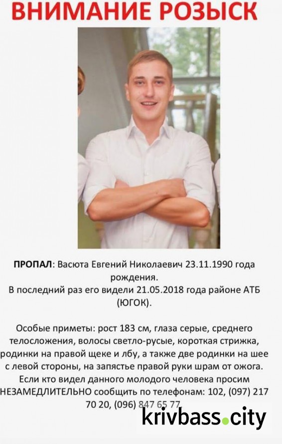 Всех, кому что-либо известно о месте нахождения Евгения Васюты, просят обращаться по телефонам: 102 или 097 217 70 20, 096 847