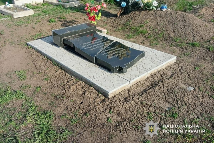 До поліції надійшло повідомлення, що невідома особа нищить надгробки. На місце події виїхали офіцери громади та слідчо-оперативна група. У ході огляду вони задокументували пошкодження 32 надгробних плит і 14 хрестів.