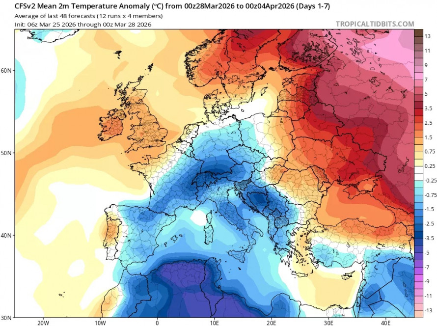 Температурний фон загалом перевищуватиме кліматичну норму. Водночас у західній частині країни очікується незначне похолодання, спричинене надходженням прохолодного повітря з півночі Європи. Це також зумовить переважання хмарної погоди в цьому регіоні.