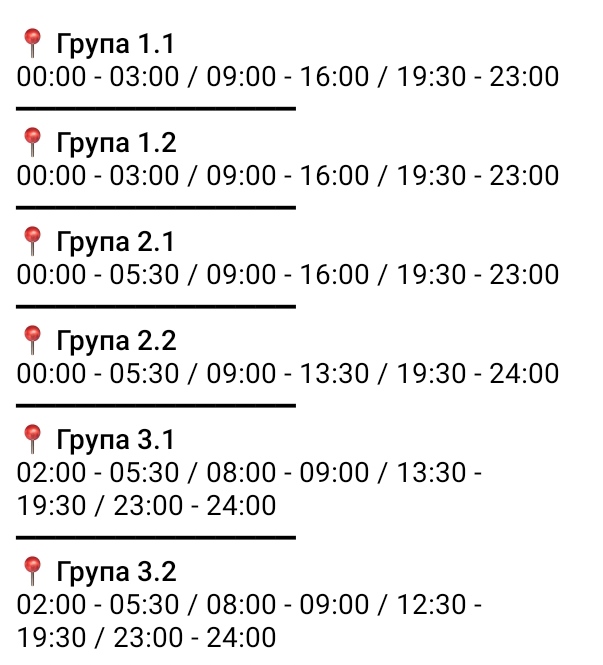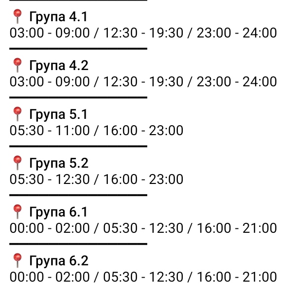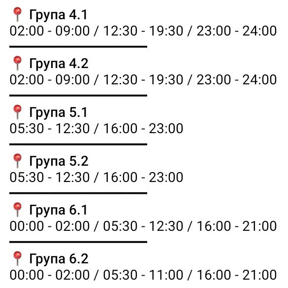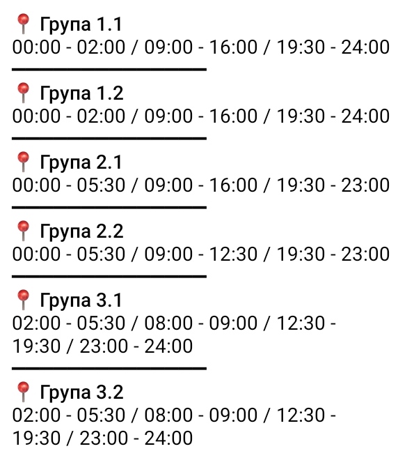 Орієнтовні графіки стабілізаційних відключень у Кривому Розі: