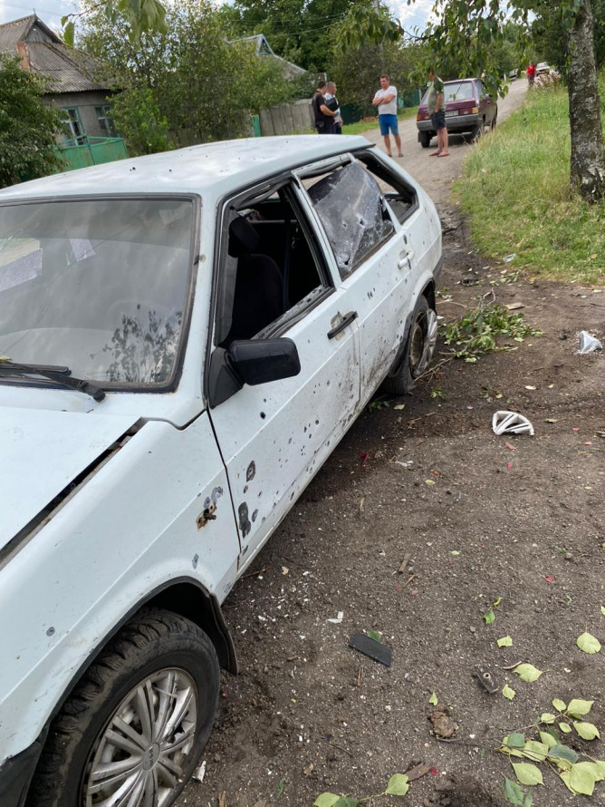 Також пошкоджено 12 приватних будинків, господарська споруда, 3 автомобілі.