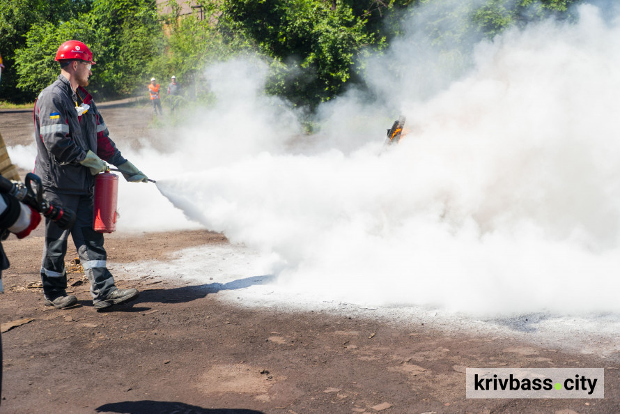 "На полігонах ми встановлювали різноманітні ємності й наповнювали їх швидкозаймистими речовинами, імітуючи реальні загоряння. А далі пояснювали, в яких випадках слід використовувати порошкові вогнегасники, а у яких вуглекислотні. Демонстрували, як правильно підходити до полум’я з підвітряної сторони, не ближче, як за 1,5 м, як тримати і направляти вогнегасник правильно, як запускати. Вчили, як зрозуміти, що пожежа вже ліквідована. А після тренувань на полігонах ланки продовжують займатися у своїх підрозділах за встановленими графіками, а також беруть участь у квартальних комплексних тренуваннях, де задіяна велика кількість людей і служб", - розповів головний фахівець дирекції з охорони праці, промислової безпеки та екології ГЗК Метінвесту Максим Совенко.