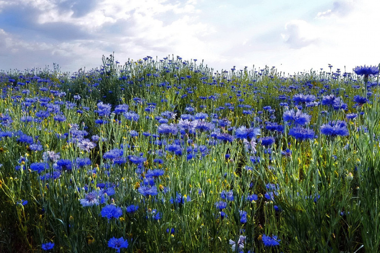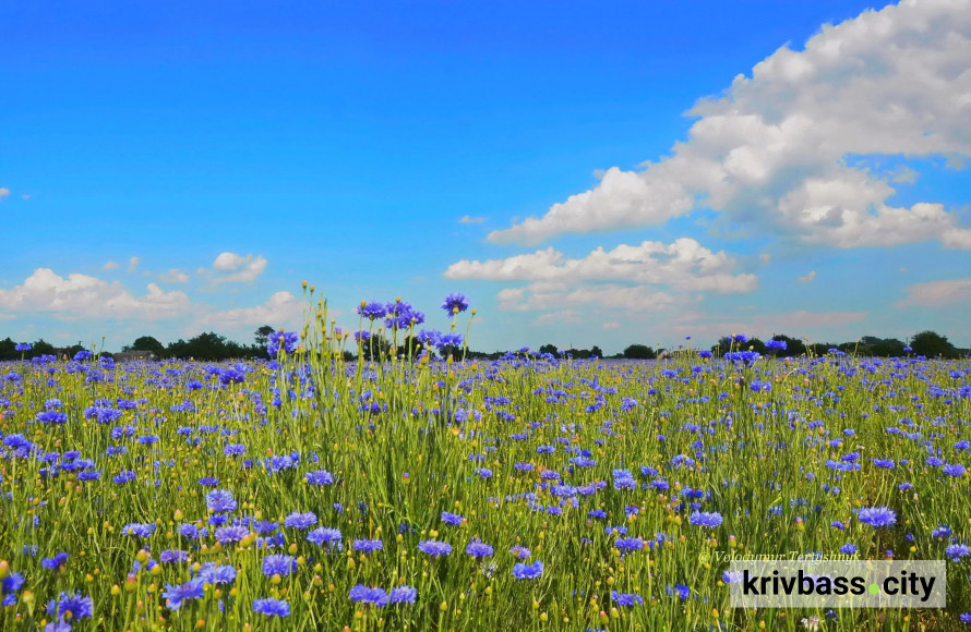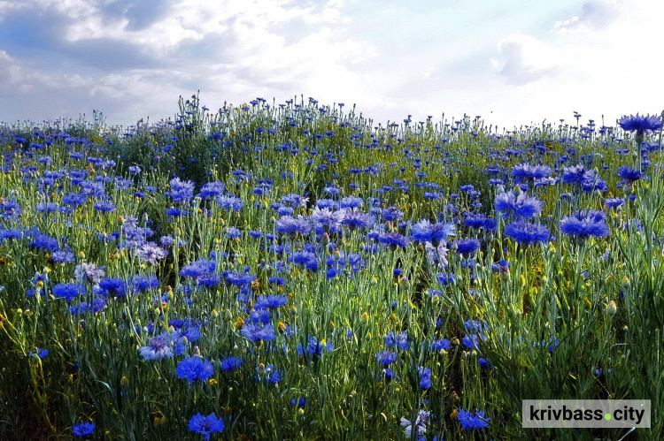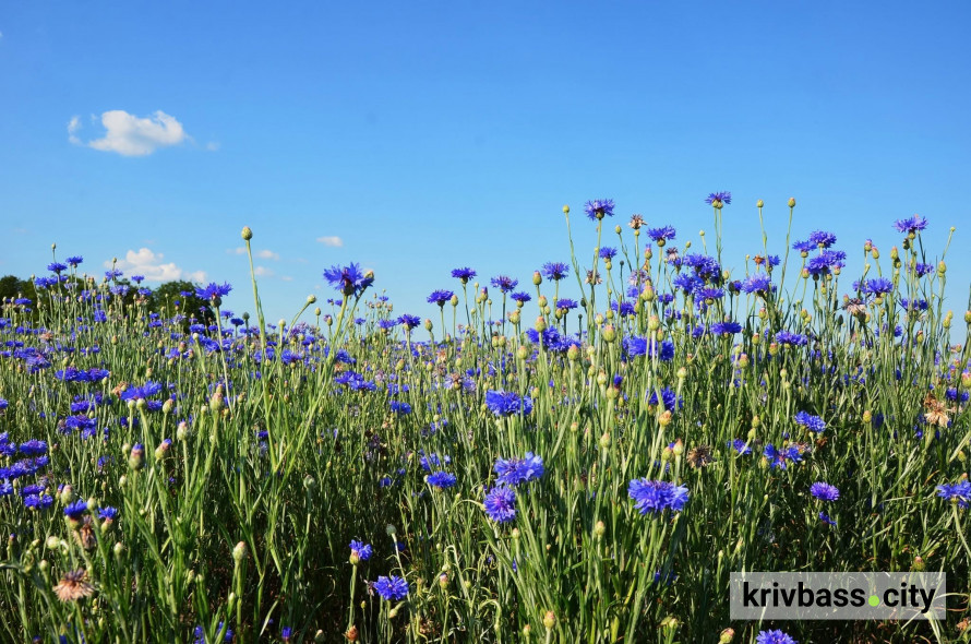 На Дніпропетровщині зафіксували справжню літню казку — ціле поле, всіяне яскраво-синіми волошками. Мальовничі світлини цього природного дива оприлюднив місцевий мешканець Володимир Тертишник.