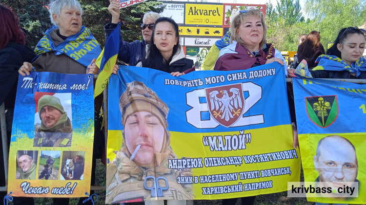 За підрахунками журналістів krivbass.city - часть в акції взяли близько 50 містян. Серед них дві молоді жінки Оксана та Христина, обидві чекають на повернення додому своїх рідних.
