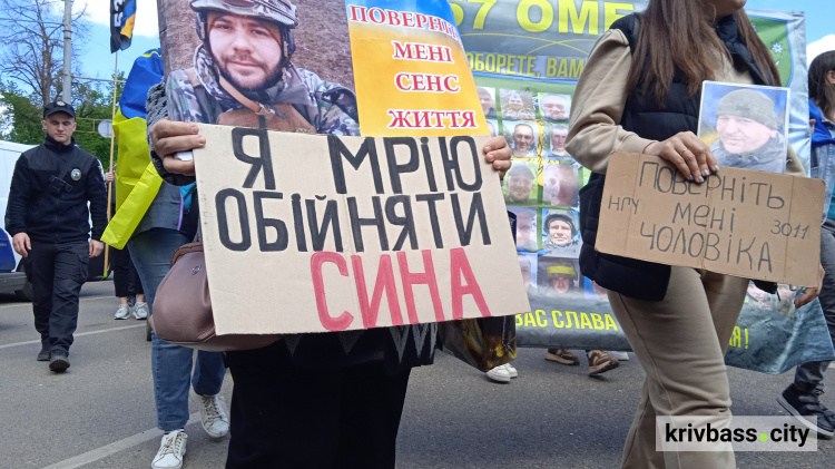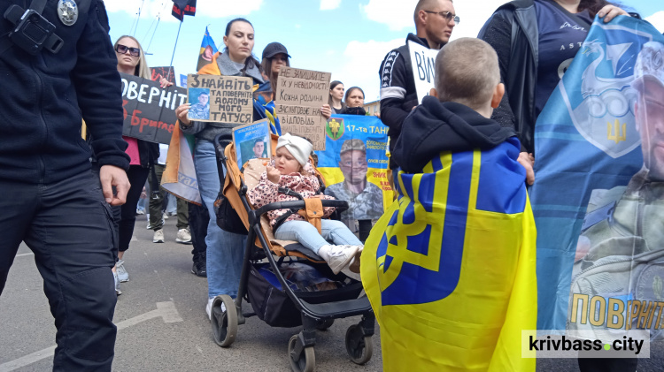 Сьогодні, 27 квітня, родини полонених зі складу маріупольського гарнізону та інших українських бригад пройшли пішою ходою вулицями Покровського та Саксаганського районів Кривого Рогу, аби нагадати містянам про воїнів, які досі залишаються в полоні.