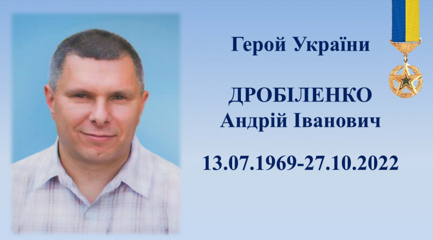Дробіленку Андрію Івановичу, старшому лейтенанту, який у 2022 році був мобілізований до лав Збройних сил України. Воював на сході країни, брав участь у Слобожанському контрнаступі за Харківську область, боях за Луганщину. Загинув під час бою в районі села Стельмахівки на Луганщині.
