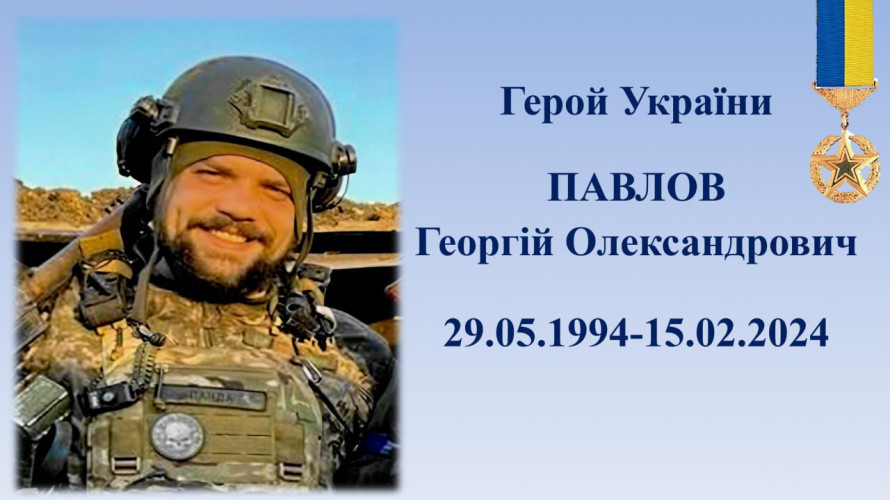 Павлову Георгію Олександровичу, старшому солдату, з 2017 року захищав Україну на сході, боронив місто Чернігів, брав участь у боях на Донеччині. У лютому 2024 року під час боїв за місто Авдіївку Донецької області на позиції «Зеніт» разом з побратимами отримав поранення. Навіть в умовах постійних обстрілів і щільного наступу ворога, проявляючи стійкість і мужність, вони намагалися втримати позицію. Був розстріляний окупантами.