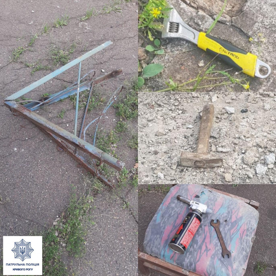 Прибувши на місце виклику патрульні обстежили прилеглу територію та поблизу виявили схожих за описом громадян, поруч із ними віконні ґрати та знаряддя – зубило, молотки, ломи та ключі для викрутки гайок. Під час бесіди з інспекторами чоловіки почали запевняти, що не знали, що то за будівля та вирішили взяти металеві конструкції собі.